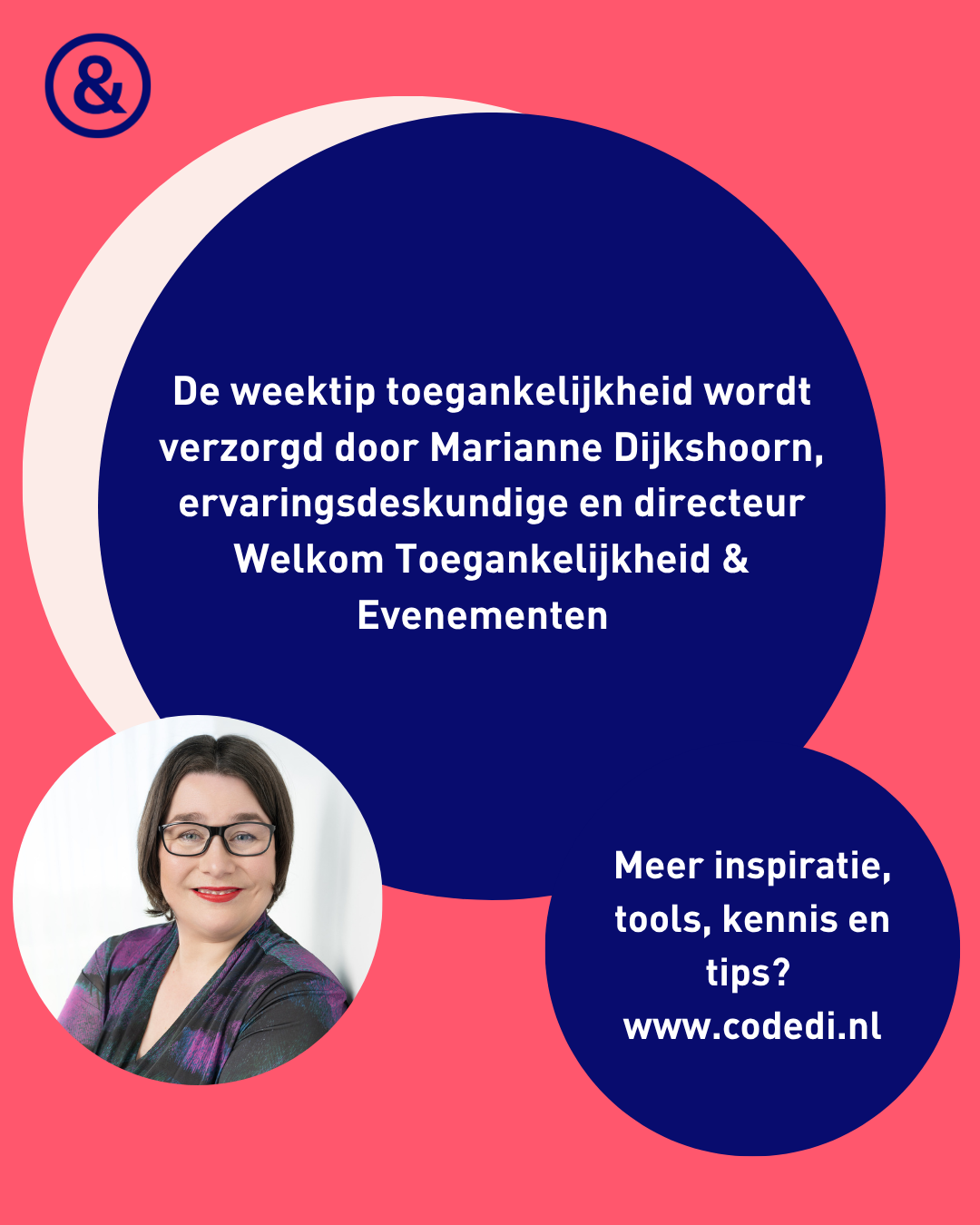 Elke week deelt Marianne Dijkshoorn van Welkom Toegankelijkheid & Evenementen een tip op het gebied van toegankelijkheid. Deze week over gastvrijheid